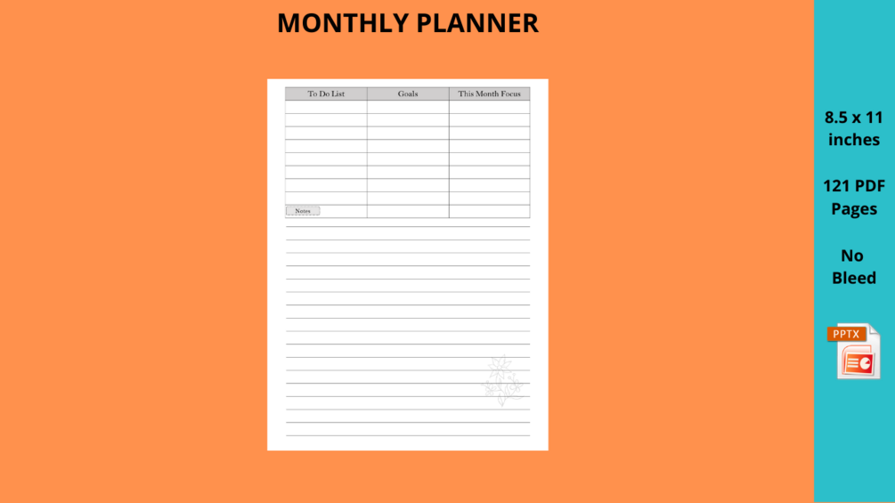 10 Years Monthly Planner Calendar - To Do List, Goals, Monthly Focus and Notes - KDP Interior