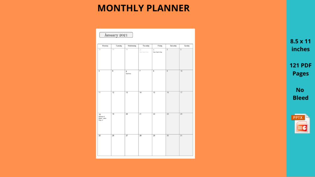 Download “5 Years Monthly Planner Calendar” with Edit in Powerpoint source files for customization.