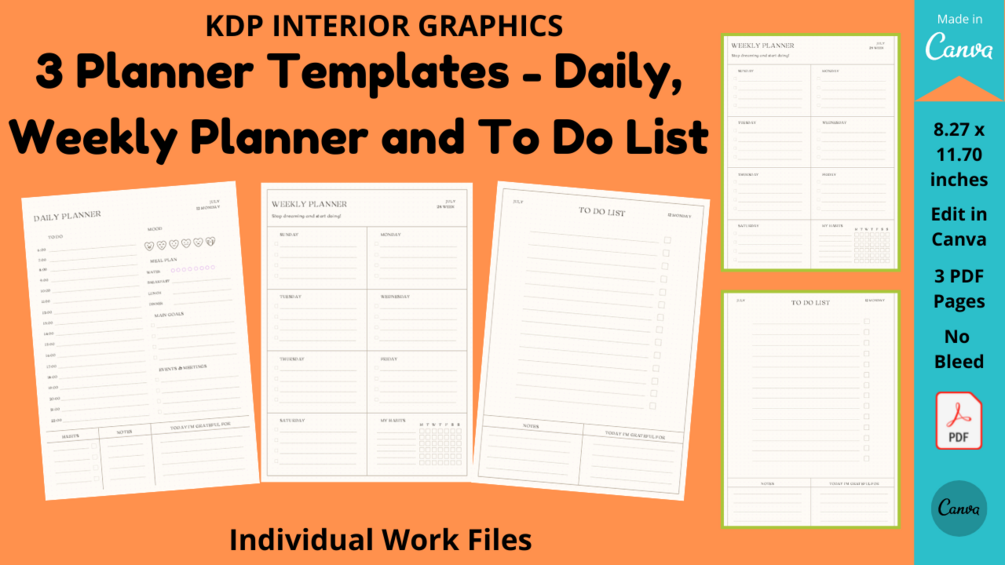 Planner Templates - Daily, Weekly Planner and To Do List - KDP Interior Graphics